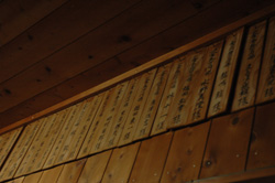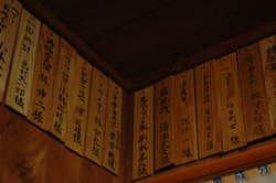 地元から寄進された目録が木の看板に記される・・・大切にされている共同浴場のお手本だ!