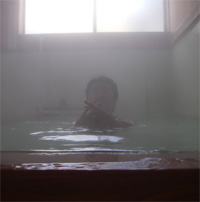 湯の花が踊る優しいお湯は、ゆったりと神経を落ち着かせるのに良さそうだ。