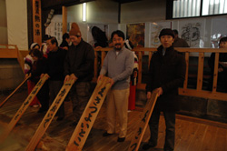 朝1番 勝手に男湯と女湯の札を架け替え、