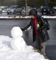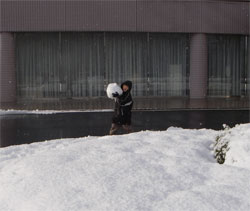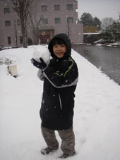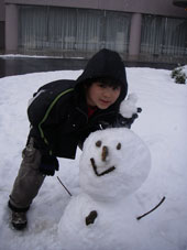 朝ごはんを食べたら詠人は一目散に玄関外へ・・・そう大好きな雪だるま作りだ。