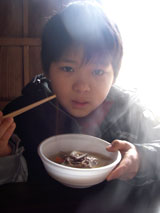 先ずは飛騨白川の古民家で栃餅雑煮をいただく。