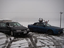 コチンコチンのアイスバーンが続出しクラッシュの車もちらほら・・・やっとるわ!