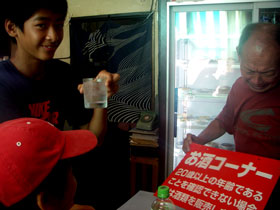 箕面の滝へとつながる道の傍らにある酒屋の立ち飲み店「梅原酒店」を訪れた。