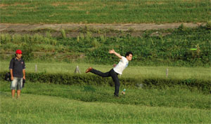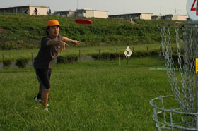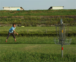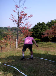 ETCの深夜割引で4時までに高速を降りると料金半額 まだ暗い早朝3時過ぎにも拘らず、さすがに人気の温泉。 湯原温泉からディスクゴルフ中四国オープンのある大佐までは、 しかも朝と昼のごはんを確保しようとコンビニを目指したが、 仕方なく大佐から先へ20キロ走り新見市外でようやくローソン発見、 まずは‘つり’防止のため服用を始めた芍薬甘草湯T−68番を飲み、 しかしパットの練習・・・入らん・・・やばいイメージ。 昼食の時に他の選手に教えてもらったのだが、