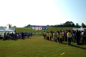 琵琶湖を中心に持つ滋賀では、秋のスポーツイベントが盛んに行われる。 その中にディスクゴルフも加わり、 希望が丘文化公園には常設コースもあり、 天気も最高!オープニングセレモニーでは、
