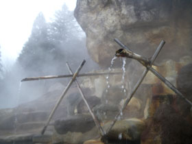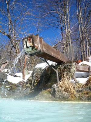 真冬ではさすがにぬるすぎるので沸かした温泉も混ぜられ適温に調整されている。