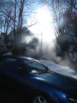 ここまではクローズドライブで我慢・・・でもこの湯気・どうよ!