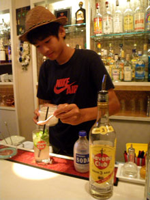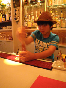スパイスの効いた炒め物から始まり、タンドールにカレーと イーストの活々とした香りがなんとも素晴らしく、 カレーのほうは正直口に合わない・・・ でも完全異国情緒溢れる店内や、サービスの女性スタッフなど感じがいい。 ついつい食べ過ぎてしまいお腹パンパン・・・ そして杜人にとってははじめての Mojito 7 BAR 対面。 「今度は完全にお父さんだけの店やから」と言うと嬉しそうに「そうなん!」 詠人は既にここでも出張でもモヒートを作った経験があるが杜人は初めて、