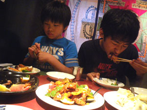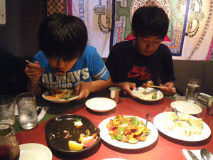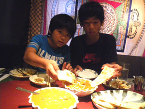 この日は思い切って杖を外し子供たちと浮田町のネパール料理屋 去年の夏休み・・・杜人の担当する宿題の新聞は、ネパールがテーマだった。