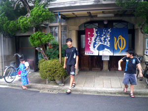 3回目の訪問となる櫻湯(開店前)、今回は杜人もせりカも一緒だ