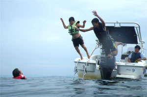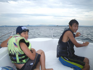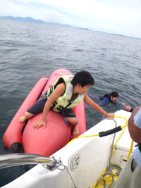 たちまち興奮が隠せない現金な子供たちだが、先ずは特等席で腹ごしらえ、