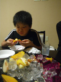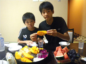 そして部屋に戻れば子供たちお待ちかねのフルーツパーティー、