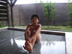 無理やりこのホテル自慢の温泉施設へ連れて行く。