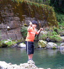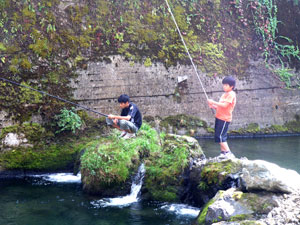 温泉の次は子供たち待望のアマゴ釣り場へ向かうが、
