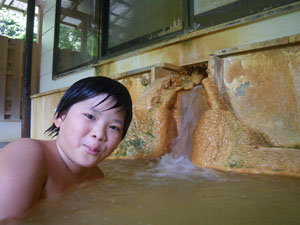 鉄分とカルシウムの豊富な黄褐色の温泉は毎分500リットル以上自噴湧出
