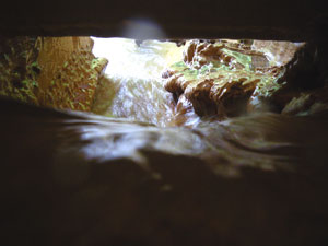 ドバドバに湧出する湯は、ここを通って露天風呂へ