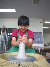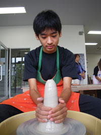 電動ろくろも初体験・・・この辺りまでは楽しく自然に笑顔が出るのだが・・・
