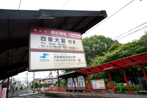 太秦映画村の看板が・・・、そして車折神社駅〜そう、駅ごと神社なアプローチ!