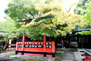 祝日だが雨のせいかひっそりとした車折神社、