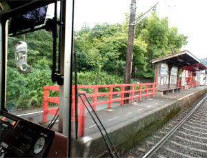 途中幅60cm有るか無いかのプラットホームが車道の真ん中にある駅や、