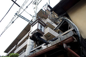 京都らしい長細い浴室では、ご主人が懸命にあちらこちらを拭きあげている。