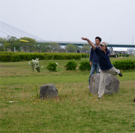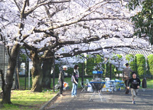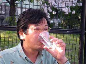 自宅すぐそばの花見は今年で5年連続、 Mojito 7 BARのお客さん「男・E堂」と「W浜」氏はともに阿倍野在住、
