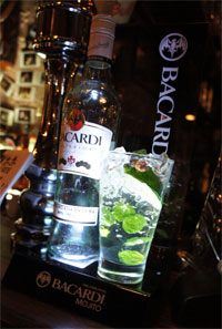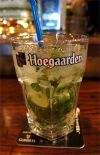 カウンターにはアイリッシュパブなのにモヒートのディスプレイ、 この店に入る時に気付かなかったが、