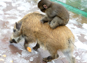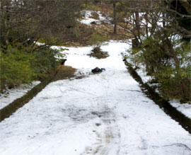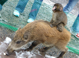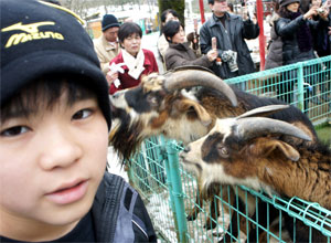 大晦日に北浦酒店で黒豆と数の子は食べたが、 しかし・・・ぬるい・・・ぬるすぎる! 「申し訳ございませんでした」と運ばれたお雑煮からは湯気が上がり、 この日の楽しみは最近TVなどで話題の‘ウリザル’擁する福知山動物園。 昨日からの温かさで雪がほとんど溶けてしまった市街地と違い、 早速トランクからスノーボードを出し、ビニール手袋&ブーツ装着。