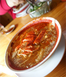 小さなお風呂なのだが「ここは外せない」ファンが多いようで、 こちとらすっかり真湯に魅せられ、霊泉の掛け湯を繰り返す贅沢なまったりを楽しんだ。 風呂上りは午前11時ですっかり腹ペコ、 喉の渇きを癒すのはキリンラガー、アテはやっぱり野沢菜を単品で注文。