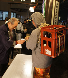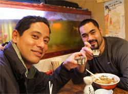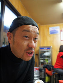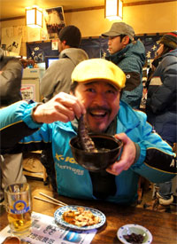 雪降る野沢温泉村だが、炎と村人たちの熱気で でもさすがに寒くは無いのだが、立ちっぱなしで疲れたAmore 八木。 一人ぼっちのAmore 八木は、「相席で宜しければ」と先に通され 聞けば岩国基地から、はるばる野沢温泉の火祭り目当てに駆けつけたらしい。