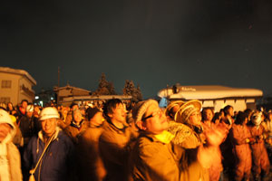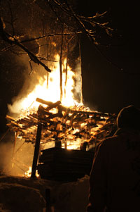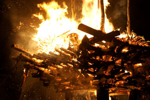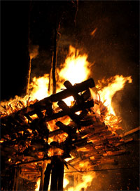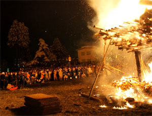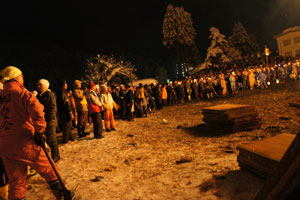 火祭り会場には大勢の地元民が、社殿を中心に輪になり かれこれ2時間近く居ただろうか?