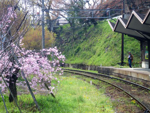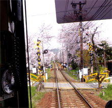 帷子ノ辻で電車を降り同じホームから乗り換えるのだが、 やはり桜のトンネルがお目当てのようで、結構な混み具合。