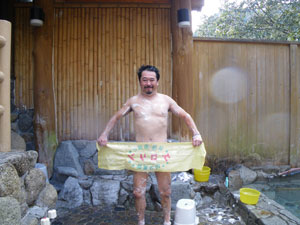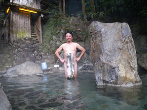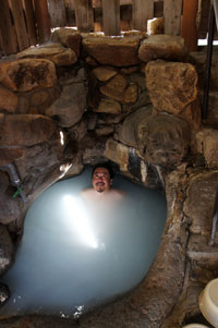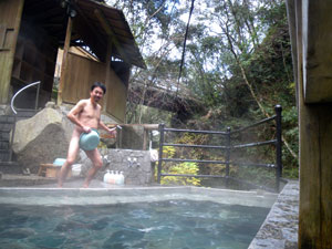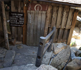 湯の峰温泉共同浴場で入浴代金30分1500円也を支払い、