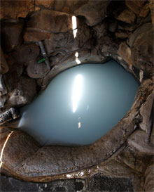 陽の当り方や角度によって変化する不思議の湯・・・直径1,2メートルほど